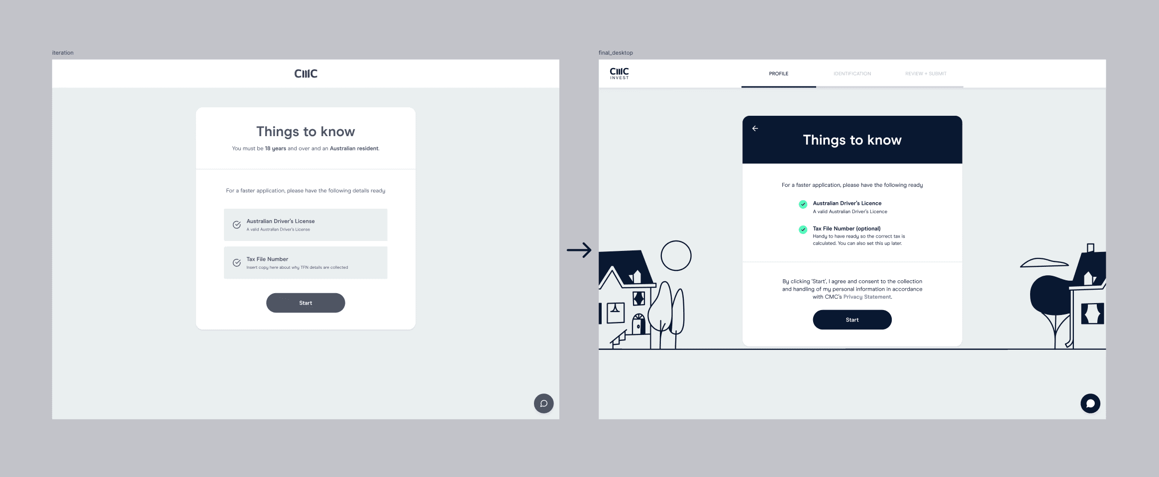 Working closely with product, tech teams, legal and compliance teams, I took several approaches to streamline the application process: